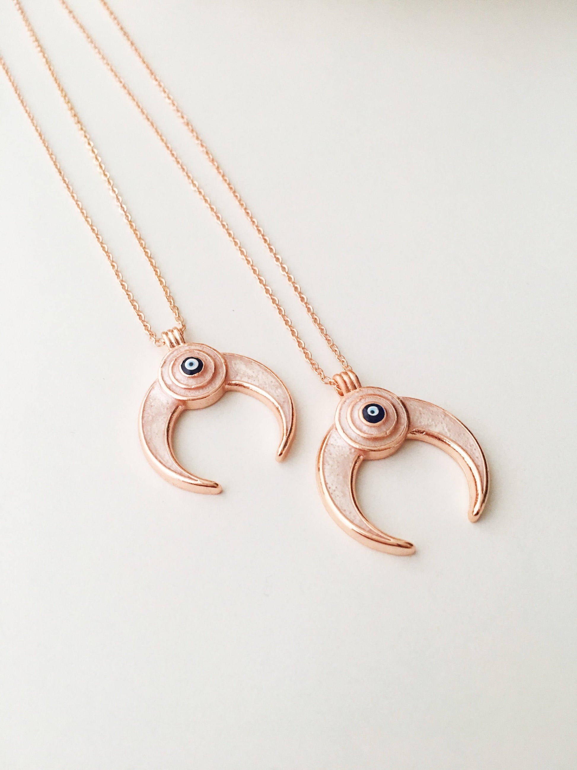 Double horn necklace, evil eye necklace, crescent moon necklace, evil