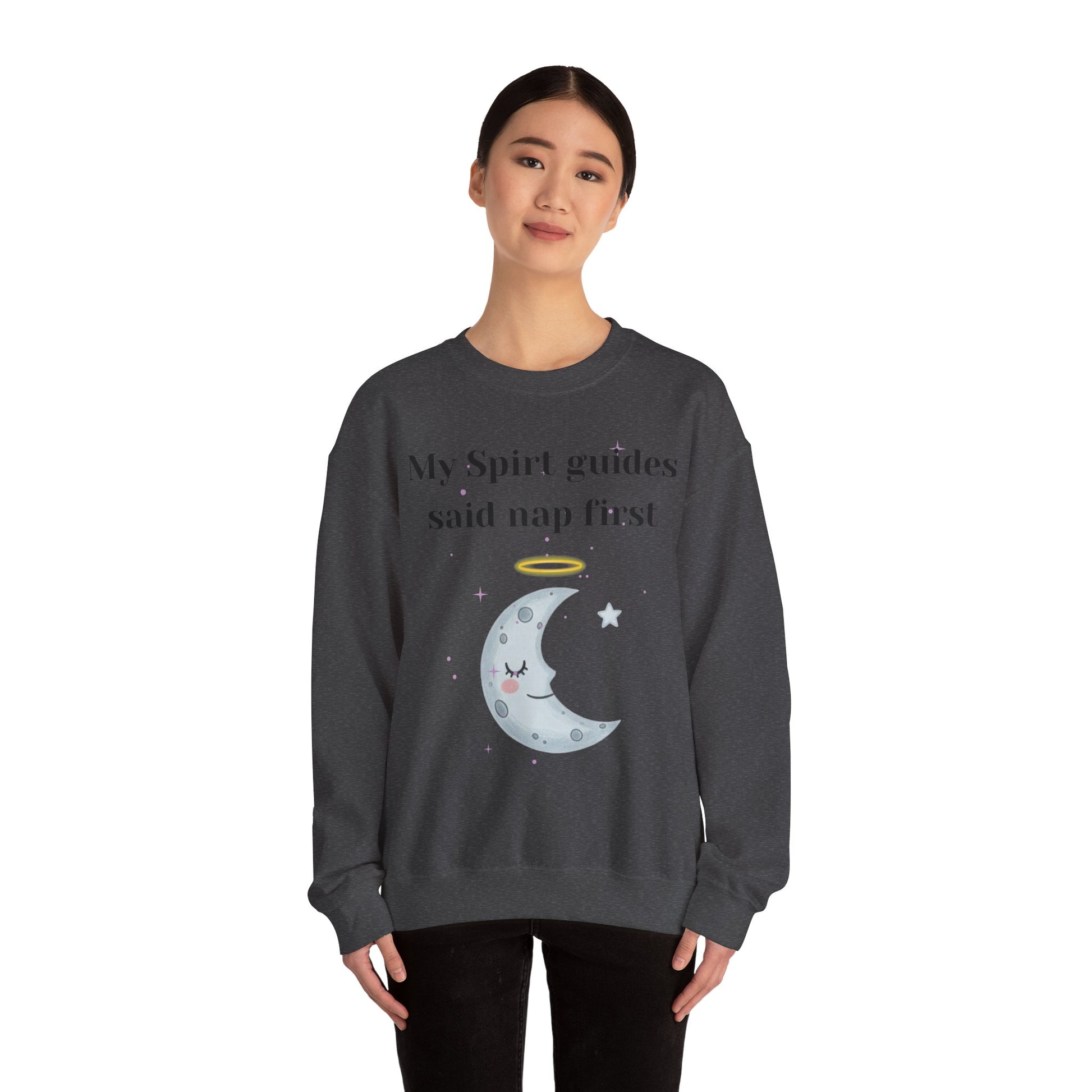 My Spirit Guides Say Nap First Sweatshirt - Cozy, Unisex, Relaxed Style, Moon Design, Perfect for Naps and Casual Outings