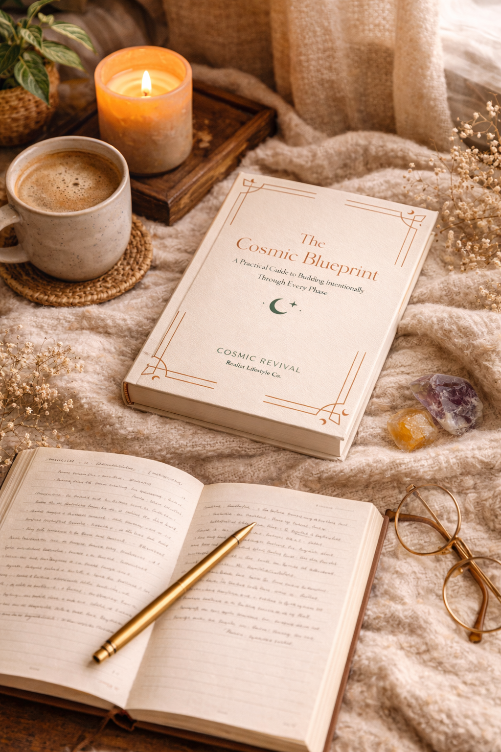 The Cosmic Blueprint is a practical guide to building intentionally through every phase of life.Inside, you’ll find reflection exercises, energy audits, standards resets, and a repeatable monthly planning system designed to help you move with awareness rather than urgency.